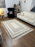 MİLANO KP-120 BEJ KREM Modern Çerçeve Desenli Yumuşak Salon Koridor Mutfak Makine Dokuma Halısı-KP
