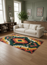 Arte HD033 Çiçek Figürlü Renkli Geometrik Desenli Dekoratif Dokuma Halı (Kopya)